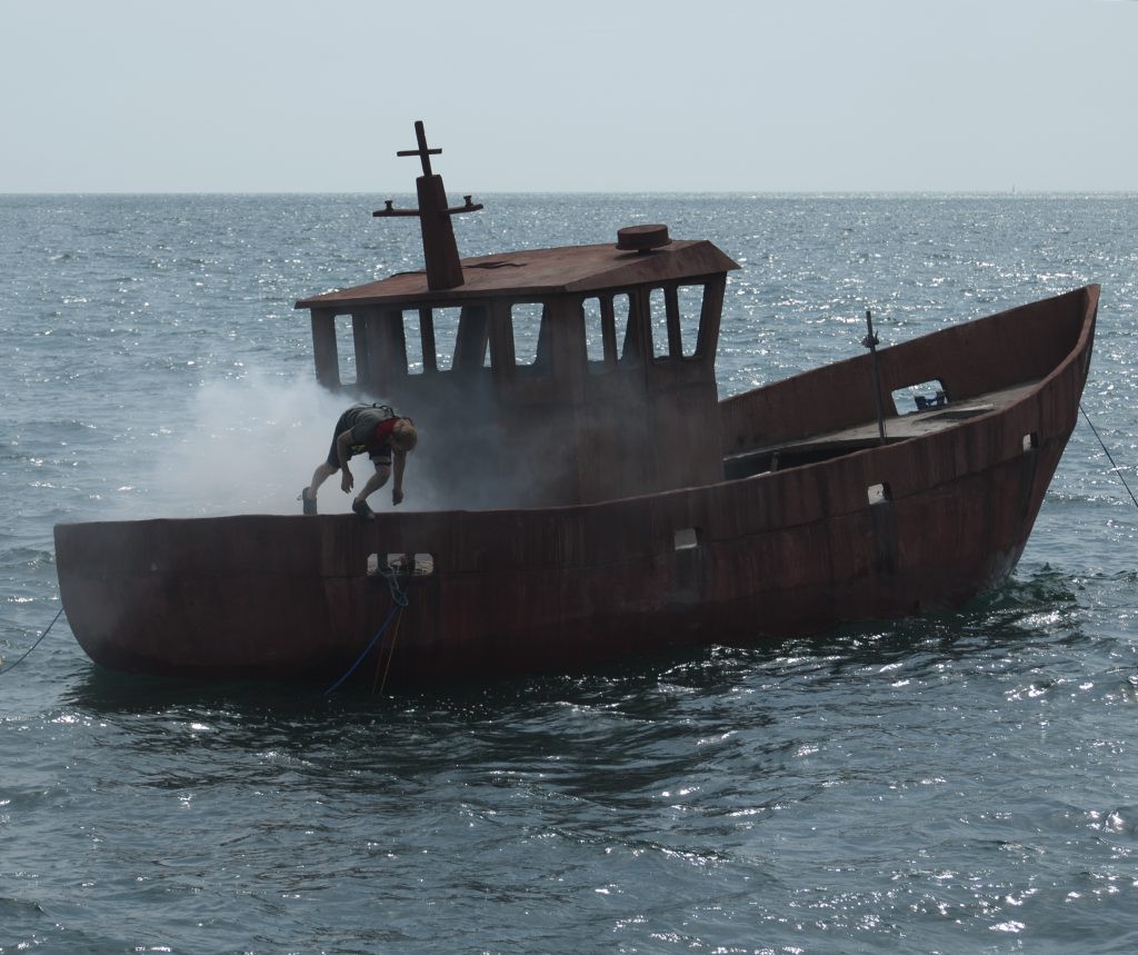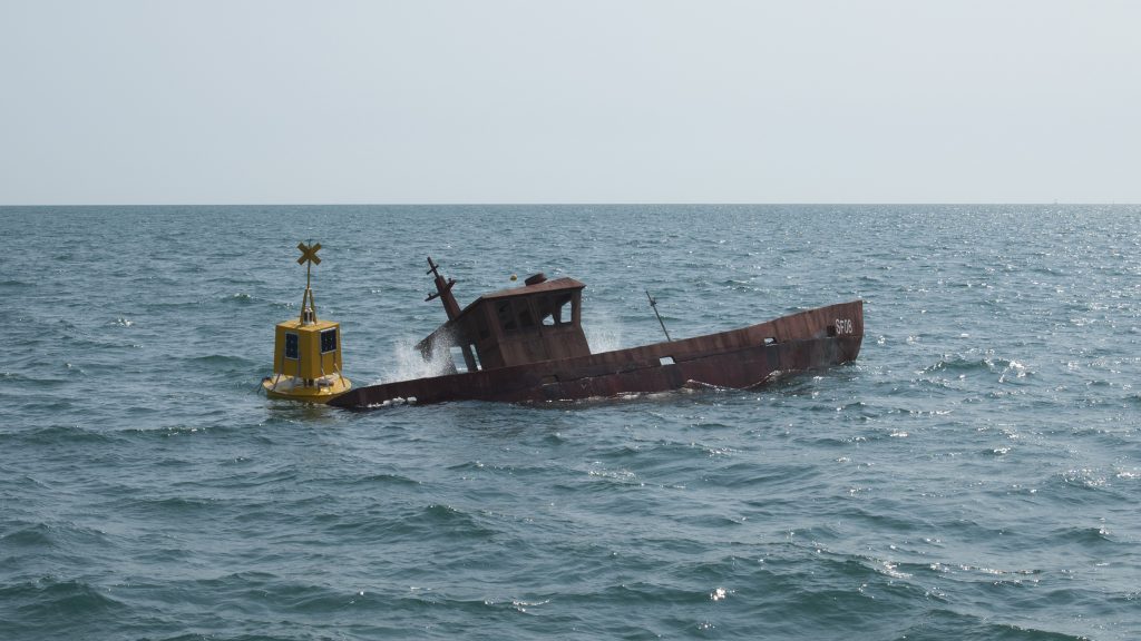 The film-work REEF came out of the deliberate sinking of a small boat called the Brioney Victoria off the coast of Southwest England. In this performative action, five cameras were mounted onboard and transmitted live to the world via a web-cast, as the boat made its final journey to the bottom of the sea. The video-work created from this event uses footage from these 5 cameras and documentation from a number of other vantage points, to tell the story of a process of transformation. The film presents the very beginning of a slow metamorphosis from defunct vessel at the end of its life, to the creation of an artificial reef – a process that will take further hundreds or even thousands of years to complete.